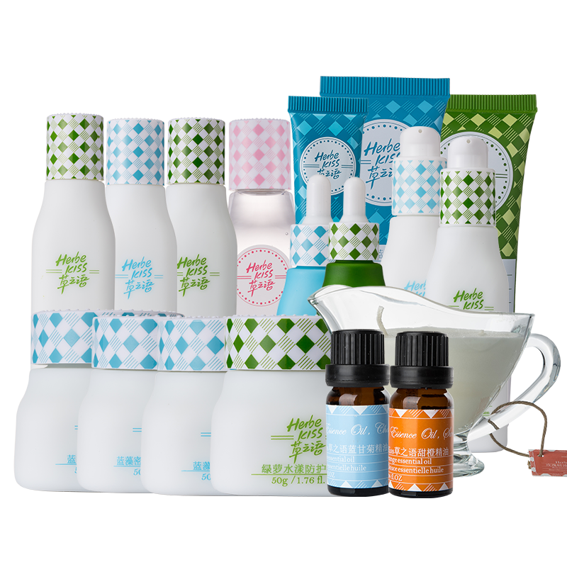 产品明细:100ml蓝藻补水保湿美肌水,20g蓝藻补水保湿眼凝胶,30ml蓝藻补水保湿菁华液,80ml蓝藻补水保湿清润乳,50g蓝藻补水保湿凝霜,50g蓝藻补水保湿滋养霜,50g蓝藻密集补水保湿菁华晚霜,30g蓝藻补水保湿色彩调控多效修容CC霜,100ml绿萝水漾防护清颜爽肤水,100ml绿萝水漾防护密集滋养水,30ml绿萝朝九晚五深夜疗肤菁华(熬夜菁华),80ml绿萝水漾防护乳液,50g绿萝水漾防护乳霜,30g绿萝水漾防护BB霜,100g玫瑰精油芳香按摩膏,150ml玫瑰水嫩鲜活花卉水,10ml蓝甘菊精油,10ml甜橙精油。
