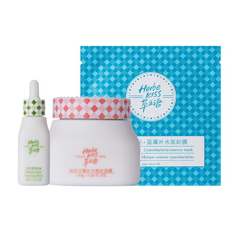 *产品明细:30ml佰草菁萃原液,25gx5蓝藻补水面贴膜,25gx5小米草面贴膜,150g杨枝甘露晚安补水面膜